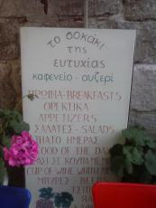 Εδώ ο επισκέπτης μπορεί ν' απολαύσει την απλότητα της παράδοσης. Η ζεστή και φιλόξενη ατμόσφαιρα, σε συνδυασμό με τους νόστιμους τοπικούς μεζέδες της Ευτυχίας, με τσιπουράκι ή ό,τι άλλο τραβάει η ψυχή σας, είναι η Ελληνική συνταγή για να περάσετε ένα σίγουρα όμορφο μεσημέρι ή απογευματάκι. Επίσης μπορείτε να χαρείτε πλούσιο πρωινό, μιας και ο καφενές ανοίγει από τις εξίμιση το πρωί.